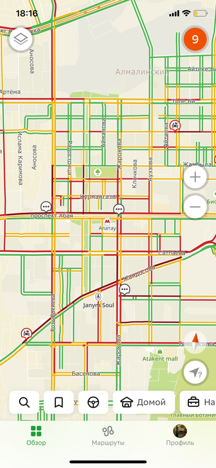 "Мой маршрут - с Навои - Торайгырова в район Абая - Жарокова либо Гоголя - Назарбаева.