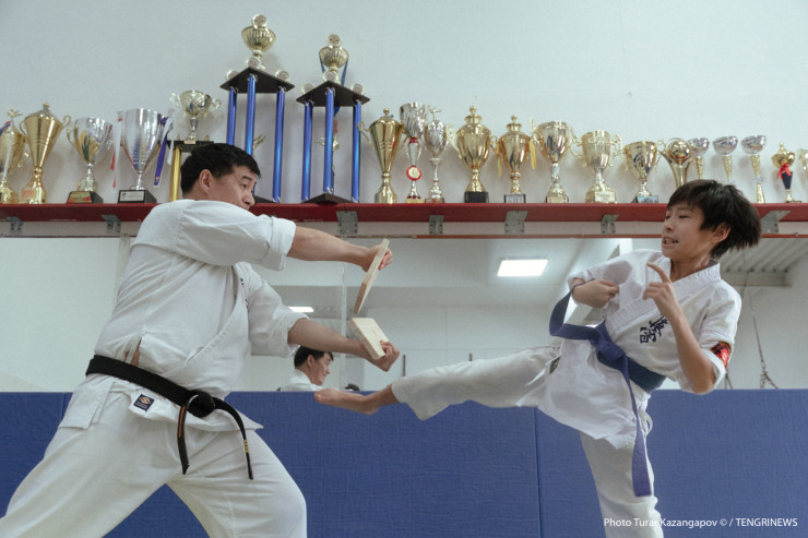 "У нас в карате все всегда начинается и заканчивается уважением. Старший или младший ученик - без разницы, мы пожимаем руки", - поясняет Айдос.