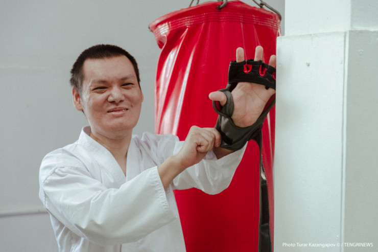 "В основном до 13 лет я не ходил, только ползал и все время сидел дома. Не выходил из дома, потому что подниматься на пятый этаж и спускаться вниз было тяжело, нужно было, чтобы кто-то помогал. А сейчас я сам могу спокойно подняться и спуститься. В физическом плане карате мне очень помогло. Сейчас я с одной тросточкой хожу, могу сам себя обслуживать, могу умываться, зубы чистить, постель убирать", - говорит он.