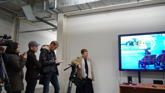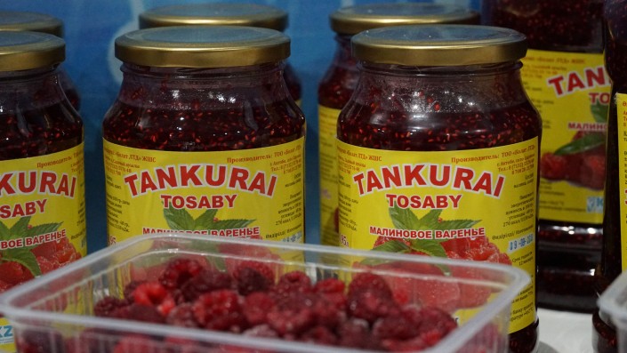 "Активно развиваются и нетрадиционные отрасли сельского хозяйства. Насчитывается 260 различных проектов, в текущем году реализуется 75 проектов на сумму 2,5 миллиарда тенге… Компания "Эко ферма 2015" применяет передовой опыт выращивания клубники. (…) Крупнейшая в Казахстане малиновая плантация продолжает расширятся. Сегодня на площадке 45 гектаров ежегодно собирают 150 тонн ягод", - объявлял голос с экрана.