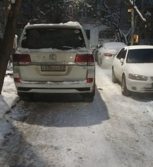 Утром 7 февраля в микрорайоне Айнабулак-3 возле дома № 152 водитель этого внедорожника загородил дорогу, неправильно припарковав автомобиль.
