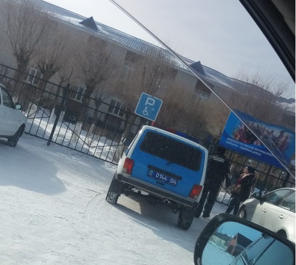 В это же день в городе Жем в Актюбинской области перед зданием акимата сфотографировали служебный автомобиль, который полицейские припарковали на месте для инвалидов.