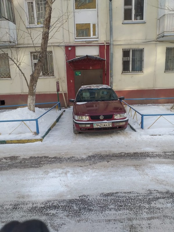 В Астане 28 февраля утром около 10.00 водитель Volkswagen оставил машину перед подъездом дома № 75/1 на проспекте Женис.