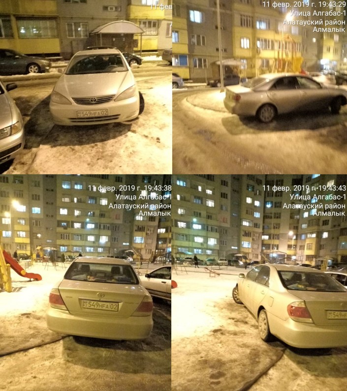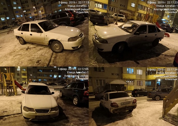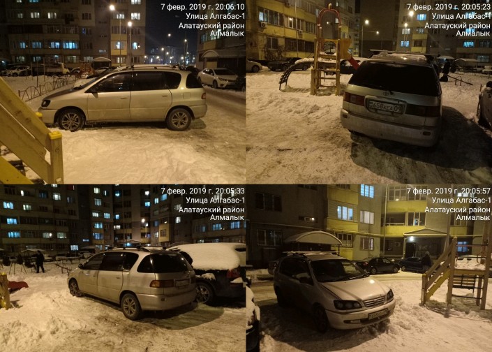 Следующие несколько нарушений зафиксировал один из наших активных читателей, который, видимо, проживает в микрорайоне Алгабас-1. Ночью 5 февраля он снял нарушение правил парковки водителями трех авто.