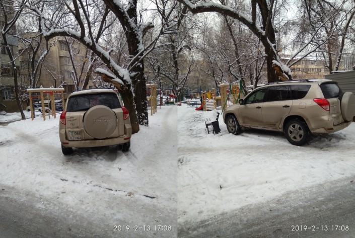 Вечером 13 февраля в Алматы водитель припарковал автомобиль на территории детской площадки во дворе дома № 40/1 по улице Байсеитовой.
