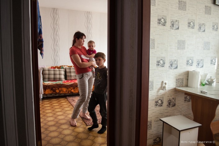 Дочь Аллы Вячеславовны Ирина с тремя детьми осваивается на съемной квартире. С деньгами на аренду, говорит она, ей помогли сотрудники акимата района Байконур.