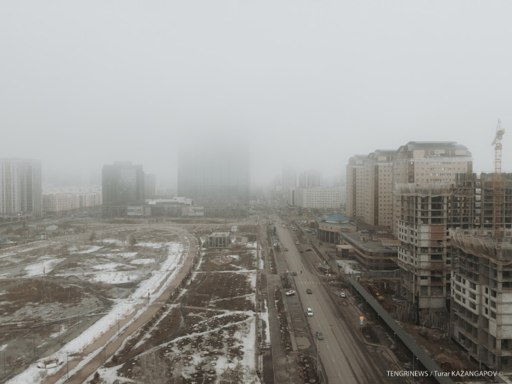 Фотограф Tengrinews.kz показал, как выглядит столица, накрытая белой пеленой плотного тумана.