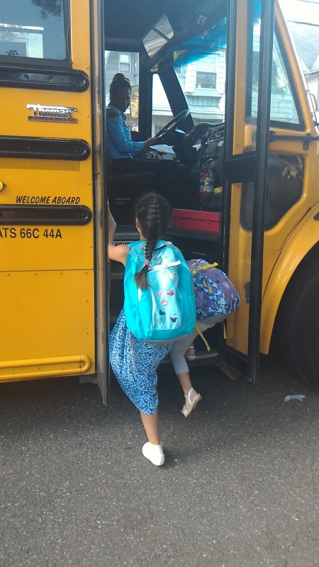 Тех, кто добирается в школу самостоятельно, на заднем дворе школы ждут дежурные или помощники учителей с указателями классов. Двор огорожен забором и закрывается на ключ. В школу родителей не пускают, собирают деток и заводят внутрь школы, дверь закрывается на ключ. А для ребят, которые ездят на школьном автобусе, вообще все еще проще. Вышел из дома, сел в автобус и поехал. В школе есть специальный дежурный, который встречает детей из автобуса и сопровождает в школу. Отмечу, что школьный автобус бесплатный. Забирают с ближайшей к дому остановки. Отводит к автобусу и встречает родитель или кто-то из родных. Если, к примеру, нет встречающего, то автобус не выпустит ребенка одного. Его обратно заберут в школу. По пути водитель звонит родителям. Если они не отвечают, то тогда звонят в полицию.