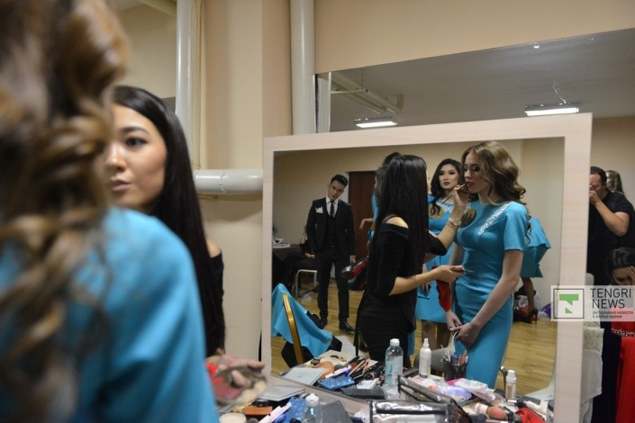 Началось мероприятие традиционно с опозданием на 15 минут. Участницам наводили последние штрихи визажа, а некоторые члены жюри в это время томились в ожидании. Певец Али Окапов за кулисами пытался, кажется, разглядеть в каждой претендентке изюминку.
