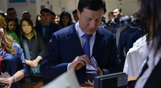 Джаксыбеков вынул из кошелька три купюры по 10 тысяч тенге. Сложил их пополам и отдал кассиру. Взяв сдачу и всучив кому-то пакеты с покупками, он повторил: "Надо, чтобы терминал был".