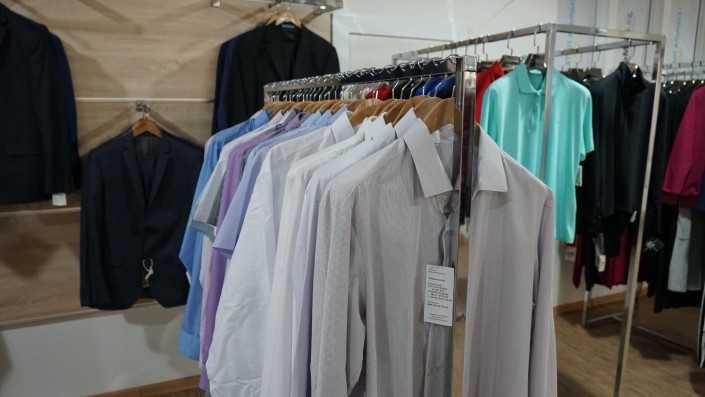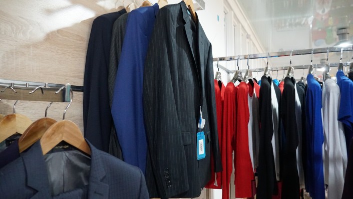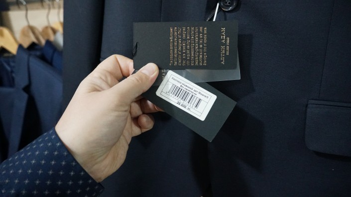 "Мы хотим, чтобы наши государственные чины, да и все казахстанцы, одевались в качественные казахстанские костюмы и при этом были горды за свою промышленность - на это у нас есть все ресурсы", - говорит управляющий магазином.