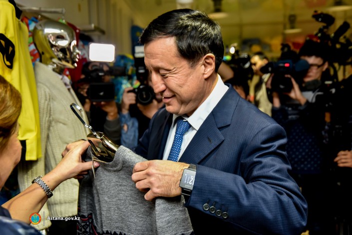 Это было ровно три года назад, 14 декабря 2015 года, прямо накануне Дня Независимости. Прежний аким Астаны Адильбек Джаксыбеков пришел на открытие магазина казахстанских производителей "УниверMag.kz" и в присутствии СМИ купил там кое-что из одежды, сделанной в Казахстане.