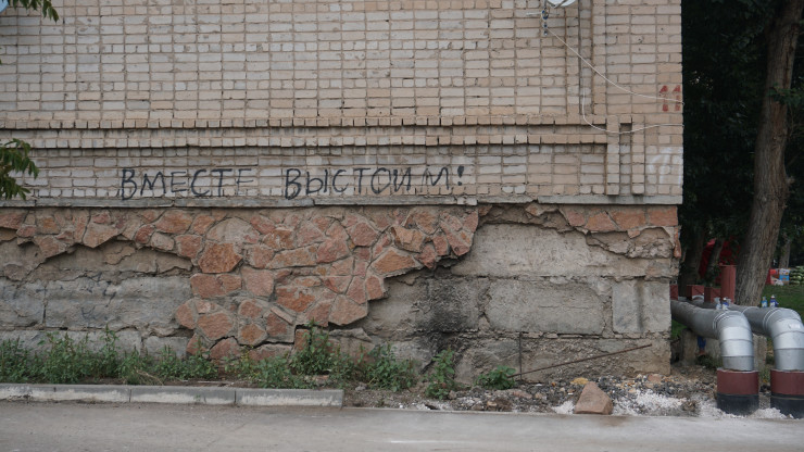 А еще запомнилась надпись на соседнем многоквартирном доме: "Вместе выстоим!".