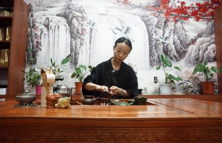 Китаянка Эми Вонг (Amy Wang) заваривает чай по всем традициям. Пока она грациозно проводит эту церемонию, можно рассмотреть обстановку этого чайного уголка - такое чувство, что ты на короткий миг оказался в Китае.