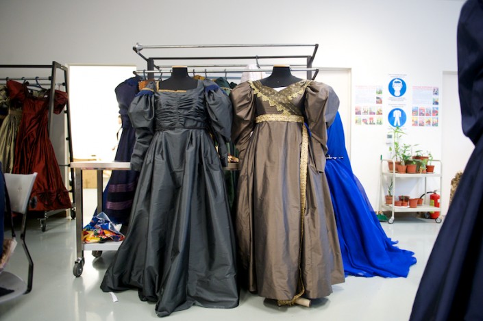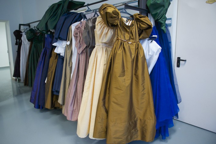 Художники по костюмам, по задумке режиссера-постановщика, использовали очень сдержанные цвета. Материалы полностью соответствуют представленной эпохе: сукно, тафта, шелк и другие ткани. Интересно, что мужчины-модники тогда носили по пять-шесть жилетов, а галстуки завязывали по несколько часов, но артистам нужно завязать их один раз и надеть очень быстро. Для этого художники будут использовать маленькие театральные хитрости.
