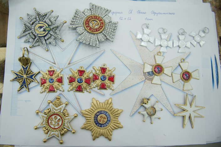 Своими секретами мастерства пользуются и бутафоры театра. Их главная задача - обеспечить артистам комфортное использование реквизита при исполнении. Например, 25 вил и грабель для крестьян они изготавливают в облегченном варианте, но в то же время следят, чтобы инструменты получились прочными. Самая кропотливая работа была проделана над орденами и медалями. Предметы хотя и мелкие, но сделали их очень реалистичными. И здесь в ход шла практически ювелирная работа, в которую входила не только резка металла для придания специальной витиеватой формы ордена, но и инкрустация его искусственными камнями. Если присмотреться, то посередине можно увидеть даже лакированный рисунок.