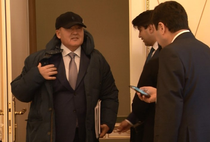 Но тут же попадает в кольцо телекамер и корреспондентов с диктофонами и микрофонами. Глава "Самрука" соглашается ответить на вопросы, но сначала снимает свою верхнюю одежду. Журналисты предлагают ее подержать на время этой импровизированной пресс-конференции.