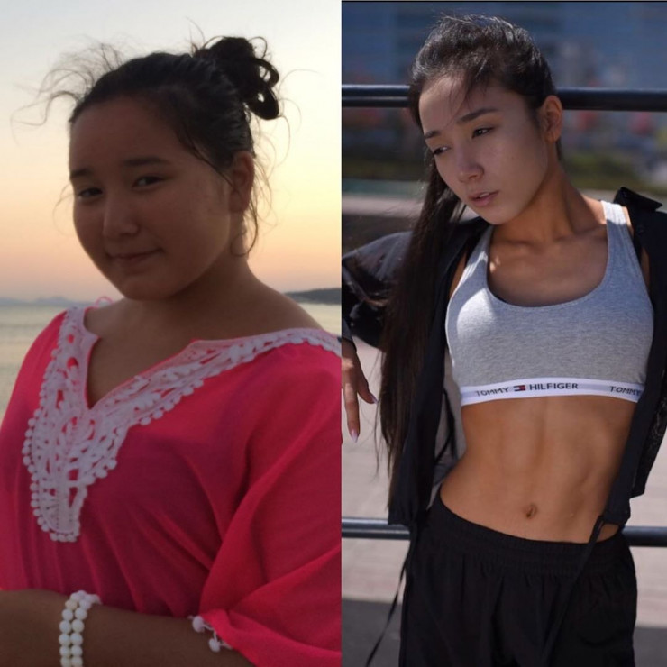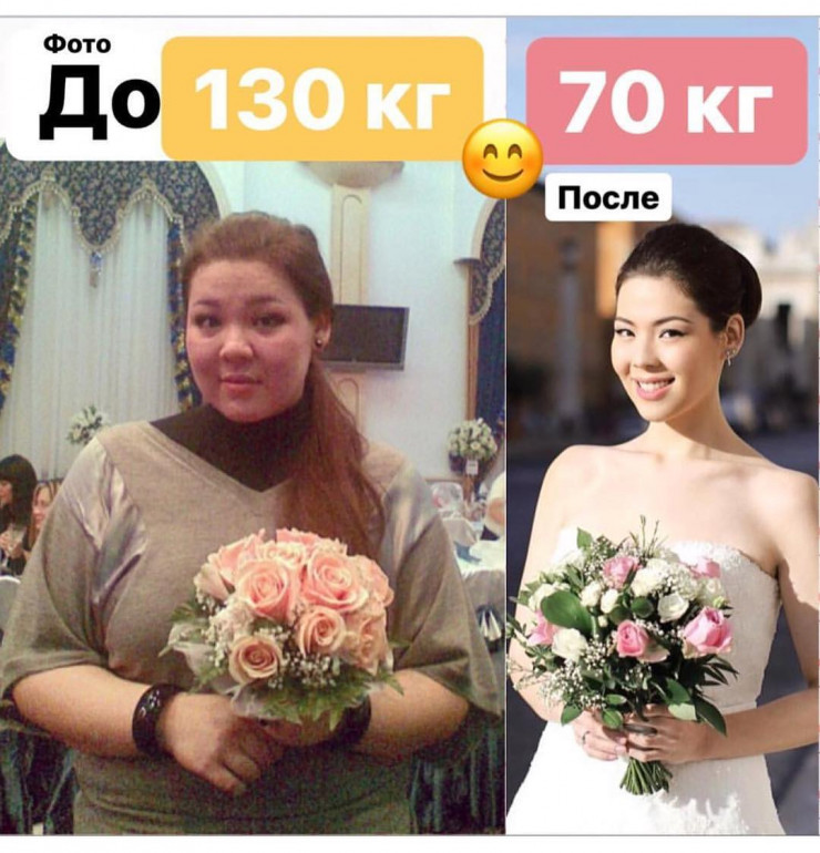 На нижней фотографии - Айтолкын Айханова. Когда-то девушка весила 130 килограммов. В интервью нашему изданию она уже рассказывала, как ей удалось из пышки превратиться в стройную красотку, сбросив 60 килограммов. Теперь, демонстрируя эти две фотографии, она подсказывает людям, как добиться таких же результатов.