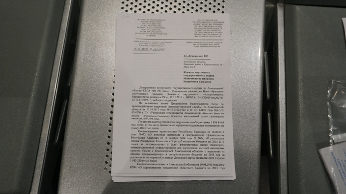 Среди многочисленных писем, которые он нам демонстрирует, ответ Комитета внутреннего государственного аудита Министерства финансов Казахстана.
