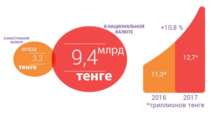 По данным Нацбанка, за 2017 год было выдано кредитов на 12,7 триллиона тенге. Это на 10,8 процента больше, чем в 2016 году. Рядовые казахстанцы набрали долгов на 4,5 миллиарда тенге, а бизнесмены - на 8,2 миллиарда тенге. Большинство кредитов выдано в национальной валюте - 9,4 миллиарда тенге. Большой популярностью пользуются кредиты сроком меньше одного года, их в 2017 году было выдано на 1,9 триллиона тенге.