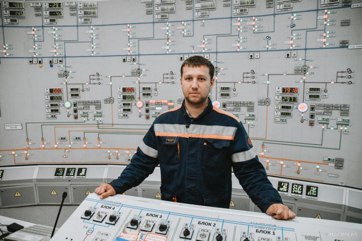 Сегодня за работой ГЭС следит дежурный инженер станции Иван Боженко. На ГЭС он работает с 2014 года.