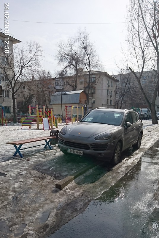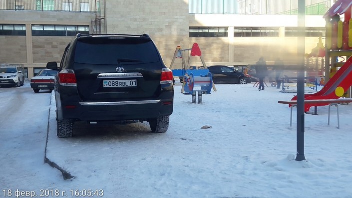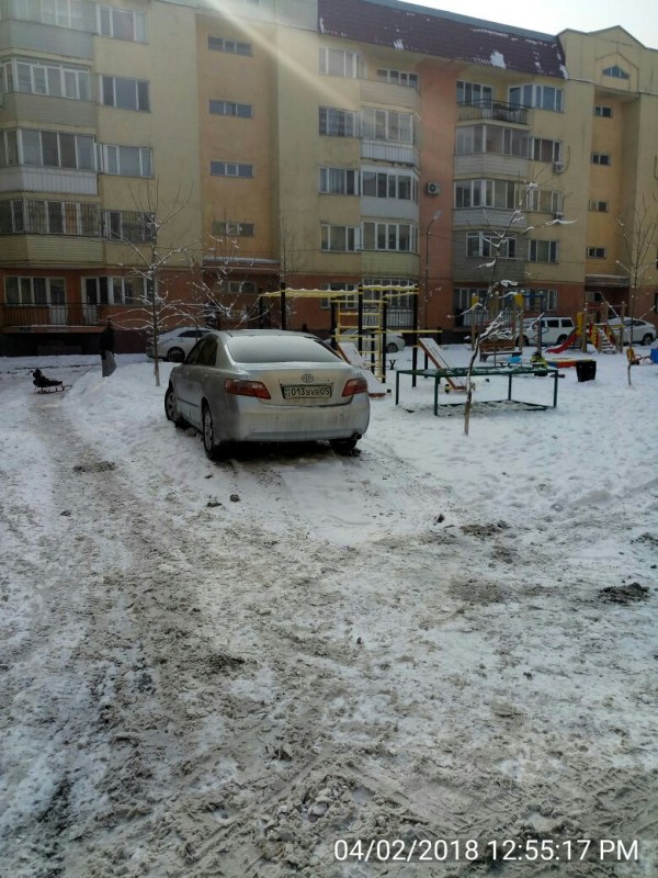 "Машина постоянно паркуется на детской площадке. Не реагирует на требования жителей. Органы полиции не приезжают", - таким комментарием сопровождается следующее фото. Адрес ЖК Smart House, улица Мангилик Ел, 33/2.