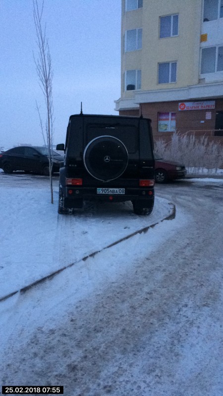 А здесь водитель внедорожника нашел себе отличное место для парковки, правда, на газоне. Район Есиль.