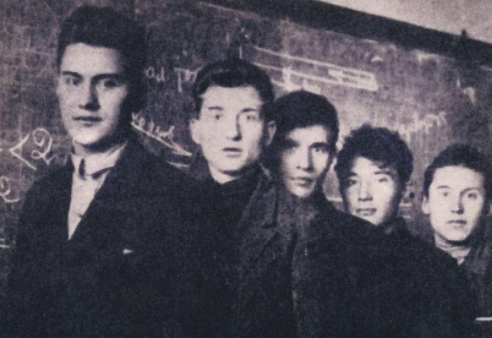 Москва, годы учебы в институте. Динмухамед Кунаев (первый слева) вместе с сокурсниками.