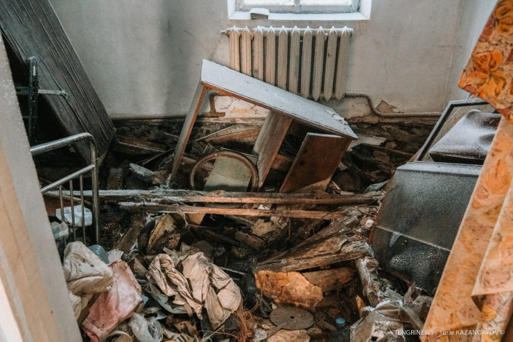 Деревянные полы провалились. Мебель испорчена. Сейчас дом попросту не пригоден для жизни. В Экибастузской ТЭЦ, со слов подруги Александра, согласились лишь оплатить покупку новых радиаторов и работу по их установке. Деньги на ремонт пола пенсионер должен искать сам. Вот только их у него нет.