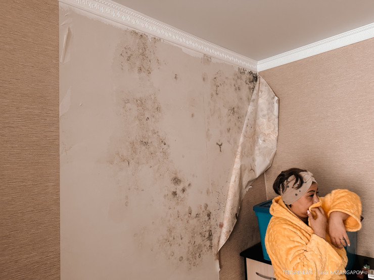 От сырости в квартирах не могут избавиться до сих пор. И все это в совокупности с почти полным отсутствием отопления. Как итог - в комнатах появилась плесень.