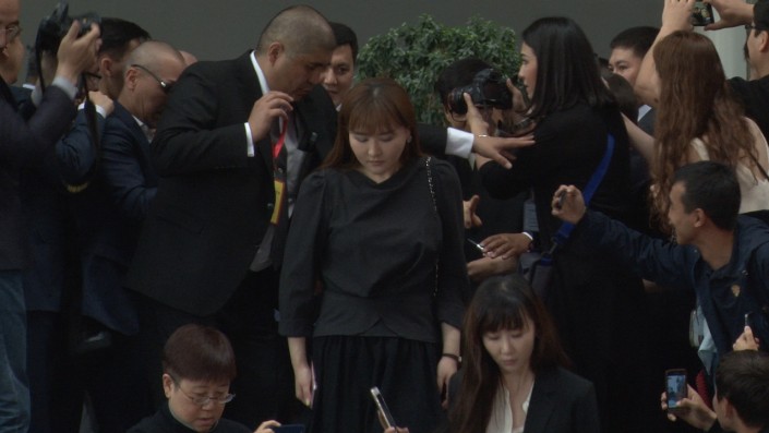 Но вот люди в костюмах начали подавать друг другу какие-то знаки. По всей видимости, они сигнализировали о том, что Джеки Чан уже на подходе.