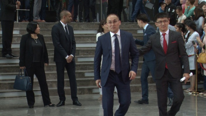 Казалось, что вот-вот и объявят самого Президента. И в каком-то смысле Глава государства здесь и на самом деле появился. Вернее, это был актер Берик Айтжанов, сыгравший Назарбаева в картине "Путь лидера".