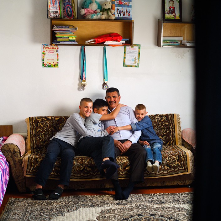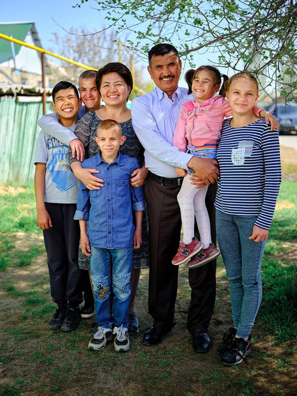 На этом фото большая семья 40-летнего Сапархана Исакова. Кроме своих четверых детей, он с супругой воспитывает еще четверых приемных. Катю, Артема, Марию и Гришу Исаковы забрали к себе два года назад.