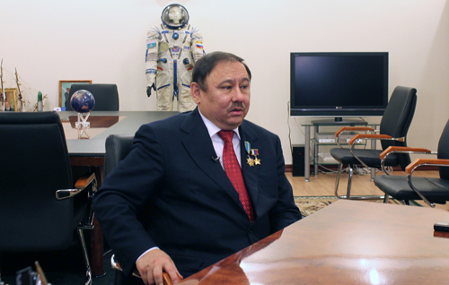 Глава Национального космического агентства Казахстана, космонавт Талгат Мусабаев в день, когда мы записались к нему на интервью, шел на рекорд. Среди представителей СМИ было много желающих побеседовать с ним в преддверии Дня космонавтики, и его пресс-служба, по всей видимости, решила, так сказать, убить всех зайцев сразу, то есть назначить в один день несколько интервью подряд. Таким образом, к кабинету Мусабаева выстроилась очередь из журналистов. Мы стояли в очереди третьими, а потому были уверены, что сил у космонавта на наши вопросы уже не останется. Но на то он и Герой сразу двух стран - Казахстана и России, чтобы быть всегда готовым идти на подвиг.