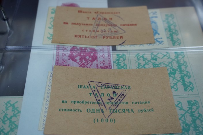 Шахты Саранска тоже выдавали свои "банкноты". Позиционировались эти бумаги как талоны на питание, однако на них видны номиналы.