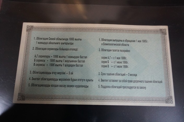 А вот самые первые облигации Казахстана 1992 года. Печатались они в Москве.