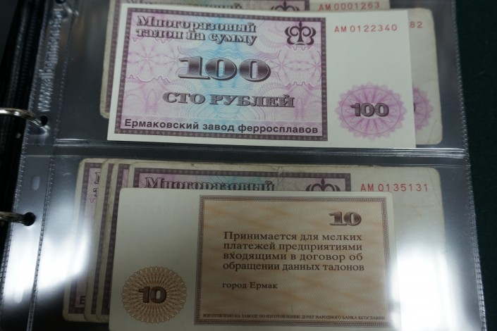 "Это наши, темиртауские деньги. Выпускал их Карагандинский металлургический завод. Одно время этих купонов было больше, чем тенге, - это я вам говорю как местный житель", - уверяет нумизмат.