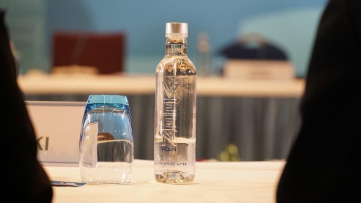 Они фотографировались и разливали по стаканам воду из очень необычной бутылки, которая, кажется, у многих вызывала интерес.