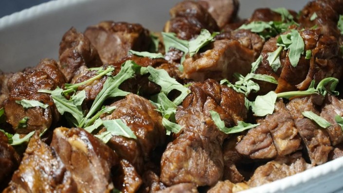 Помимо рыбы гостям подавали мясо. И нужно сказать, подавали щедро. По-братски.