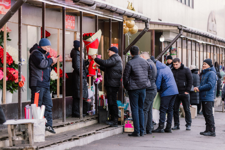 Для тех, кто хочет порадовать любимых женщин, - цветочные ряды. Видимо, таких желающих немало.