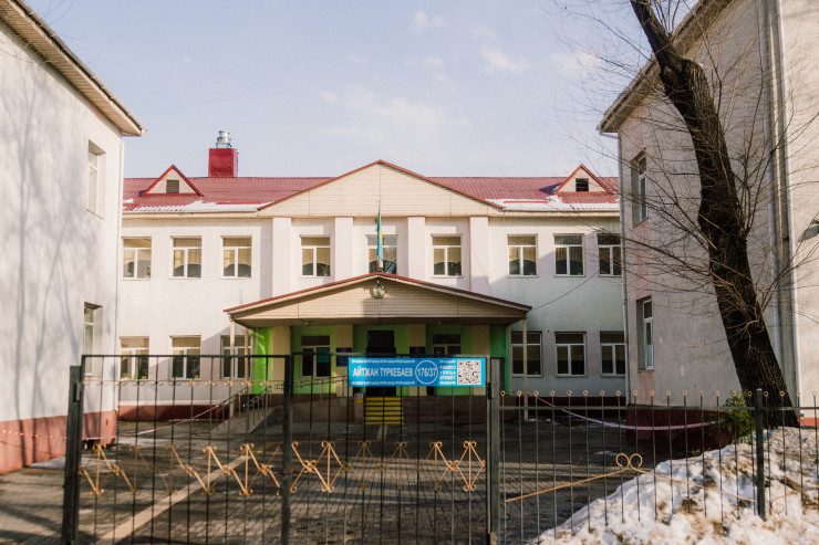 А это общеобразовательная школа номер 75 (пересечение улиц Туркебаева и Шакарима).