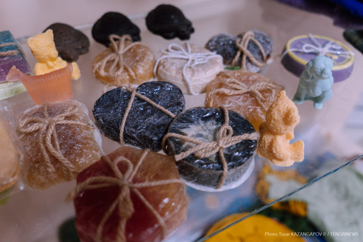 В торговой лавке можно найти мыло ручной работы - это сделали внучки Болатбека.