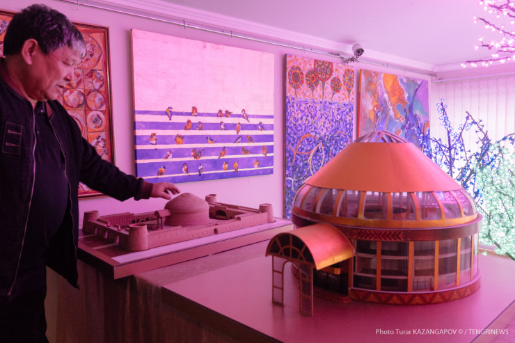 Например, приходит в эту гостиницу условный мастер, подает свое удостоверение, а на табло сразу высвечивается вся информация о нем и тут же администратор объявляет всем присутствующим, что перед нами настоящий творец, заслуживающий большого почтения. И сразу такому творцу дают скидку на проживание в 50 процентов, заселяют его в роскошный номер, размером 18 на 6,5 метра. Причем заселяют с его семьей, чтобы семья видела, что их отец нужный человек, что он признанный мастер. То есть я хочу тем самым поднять статус художника, чтобы почтение было не только высокопоставленным чиновникам, но и мастерам", - поделился своей идеей Болатбек.