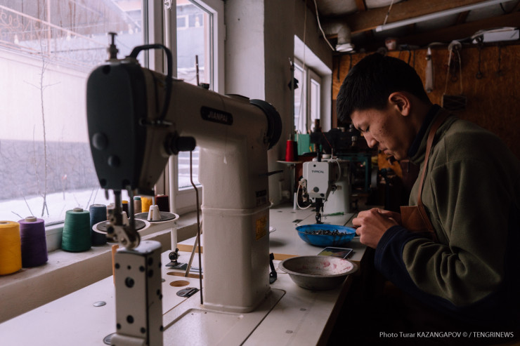 "У братишки сын поступил в колледж на железнодорожника. Родители отправили его к нам, потому что у нас семья не только художников, но и железнодорожников. Они надеялись, что мы поможем ему в становлении железнодорожником. Но он прожил у нас три месяца, втянулся в наш творческий процесс (студенту доверили производство деталей для будущих изделий из кожи) и говорит: народное ремесло - это же самая лучшая работа", - говорит Болатбек, и снова в глазах его заметен игривый блеск.