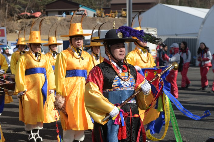 В целом в олимпийских деревнях смотреть не на что. Кроме той, которая в Пхенчхане. В дни перед открытием тут постоянная атмосфера праздника. Здесь то и дело проходят церемонии поднятия флагов стран-участниц, которые сопровождаются шумными представлениями.