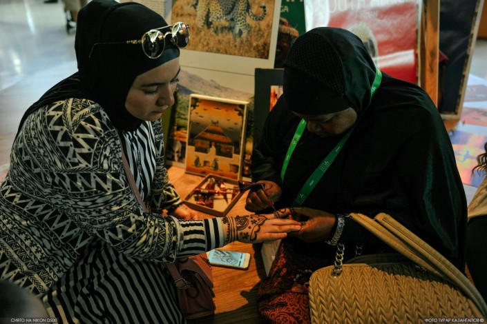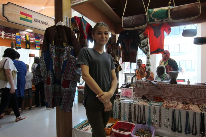 "Они очень добродушный народ и очень сильно уважают матерей. А еще они очень разносторонние. Могут не только хорошо торговать, но и хной рисовать, танцевать и петь - это очень клево", - говорит одна из казахстанских девушек, работающих в африканском павильоне.