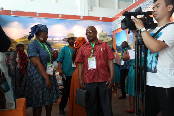 В тот день в африканском павильоне отмечали сразу два события - День африканских женщин и Национальный день Королевства Лесото. Эта страна расположена в горной местности, в ней проживают порядка двух миллионов человек, а символом государства является вот такая шляпа.
