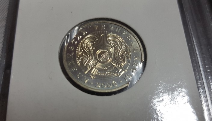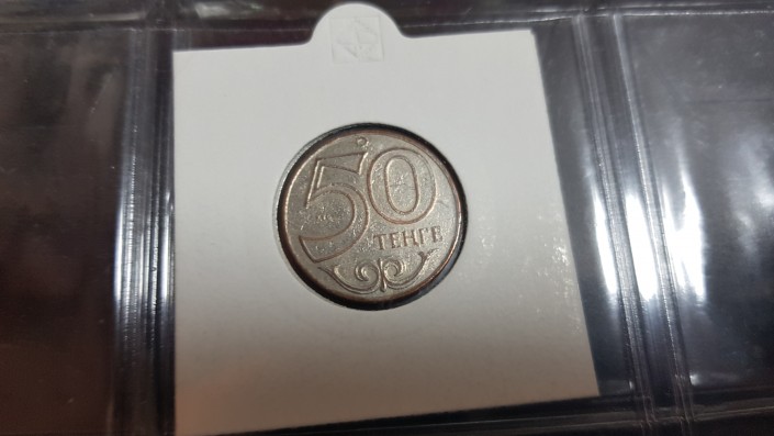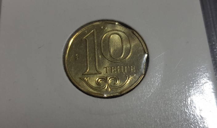 Следующая монета - тоже редкая находка, центральная ее часть смещена на самый край, нумизматы готовы приобрести такую более чем за 10 тысяч тенге.