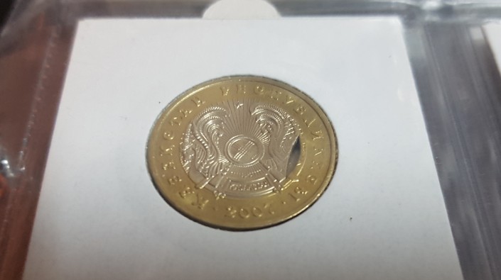Еще один очень редкий экземпляр. Как вы знаете, на казахстанских монетах медальное ориентирование штемпеля. Проще говоря, что бы прочитать обратную сторону монеты, мы должны повернуть ее по горизонтальной оси - налево или направо. Однако некоторые страны, например США, Франция, используют монетное ориентирование штемпеля, и там обратная сторона монеты видна при повороте через вертикальную ось.