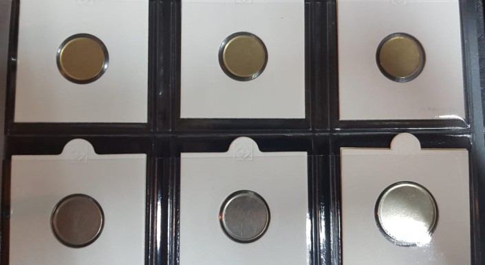 Выглядят они следующим образом. Вырезаются такие заготовки из металлических лент. Для сложных монет, например стотенговых, вырезаются две заготовки, которые перед чеканкой объединяются в одну. На этом этапе часто случаются браки.